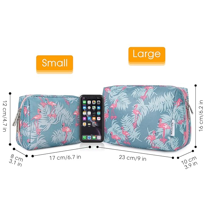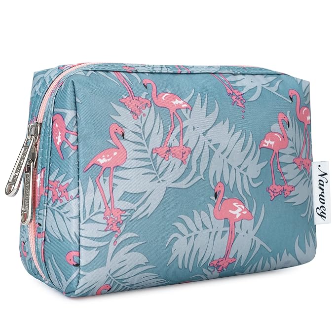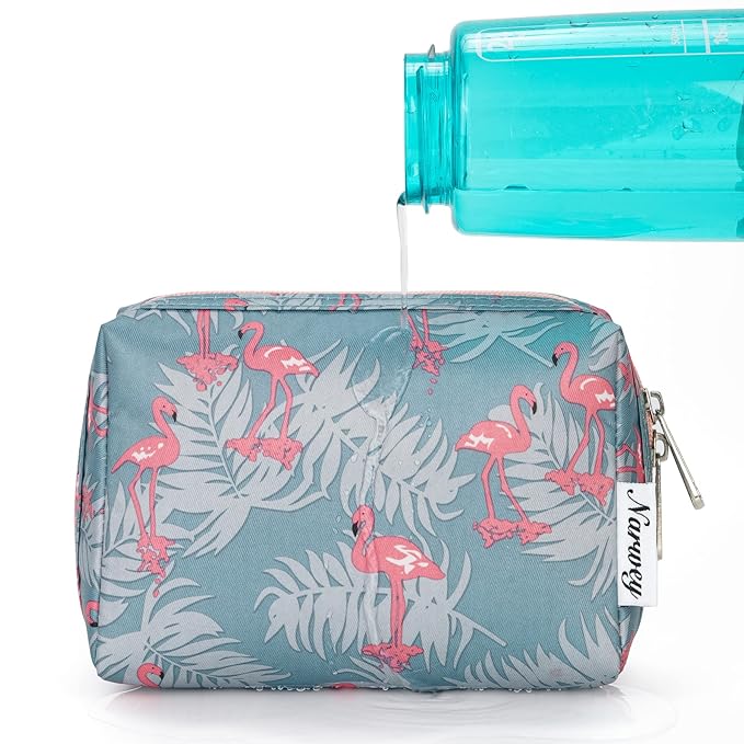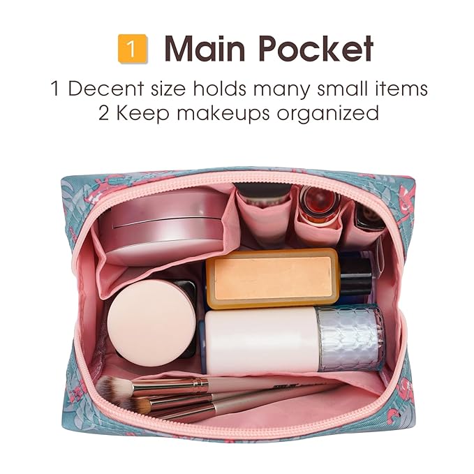 Narwey Small Makeup Bag for Purse Mini Cosmetic Bag Travel Makeup Pouch Zipper Pouch Cute Make up Bags with Compartments for Women Girls (Flamingo, Small)