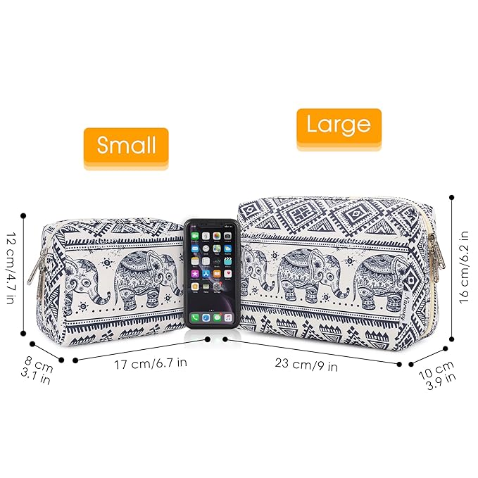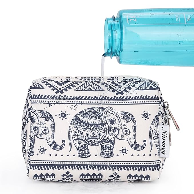Narwey Small Makeup Bag for Purse Mini Cosmetic Bag Travel Makeup Pouch Zipper Pouch Cute Make up Bags with Compartments for Women Girls (Elephant, Small)