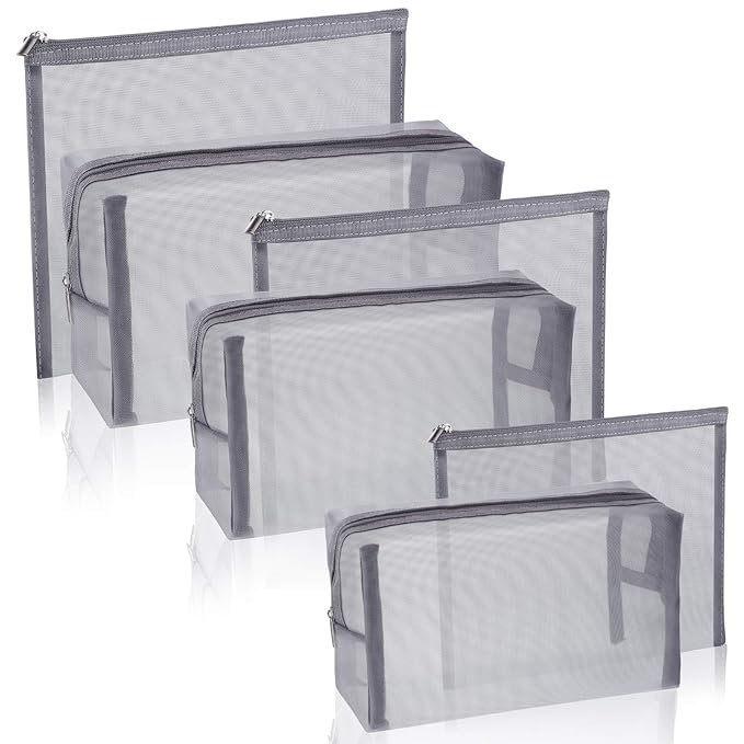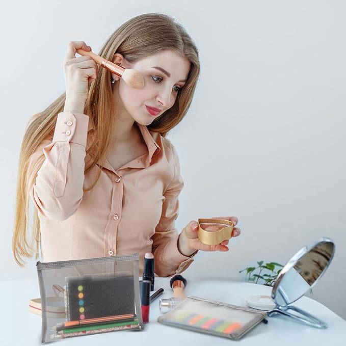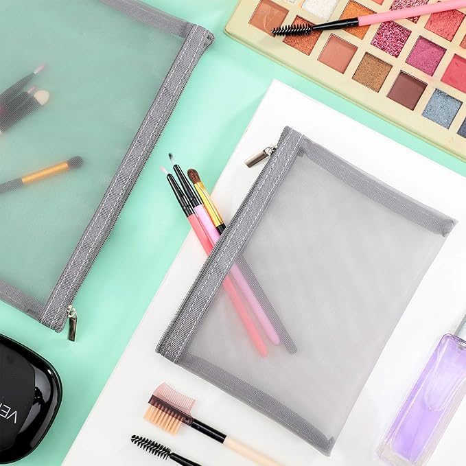6 Pieces Mesh Makeup Bags Mesh Cosmetic Bag Portable Travel Organizing Zipper Pouch Toiletries Makeup Pouches for Home Office Travel Accessories (Gray)