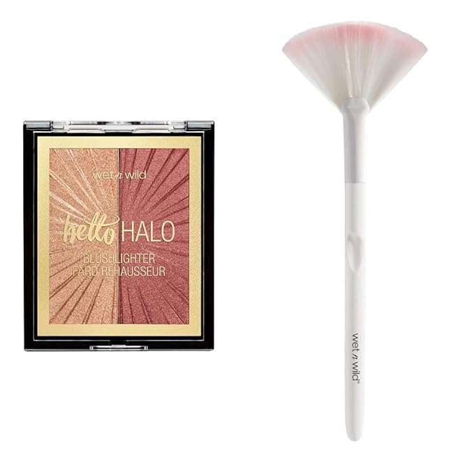 wet n wild Mega Glo Blushlighter Blush and Highlighter Duo, Flash Me + wet n wild Fan Brush