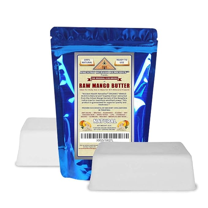 ANCIENT HEALTH REMEDIES Organic Unrefined Raw MANGO BUTTER JAR/BLOCKS Bulk, Light Mango Aroma, Non-Greasy Base for Beauty, Skin Moisturizing, DIY Base for Body Butter & Hand Creams (8OZ)