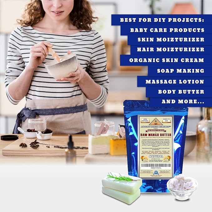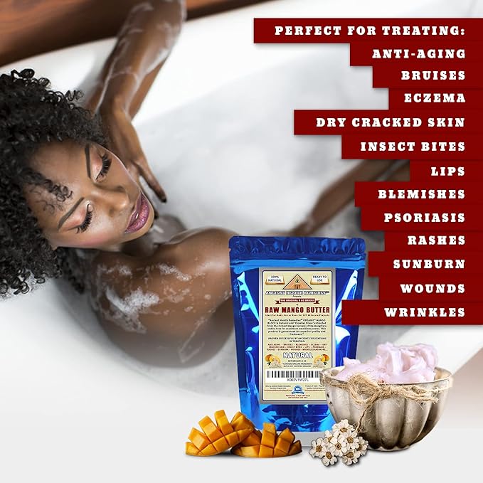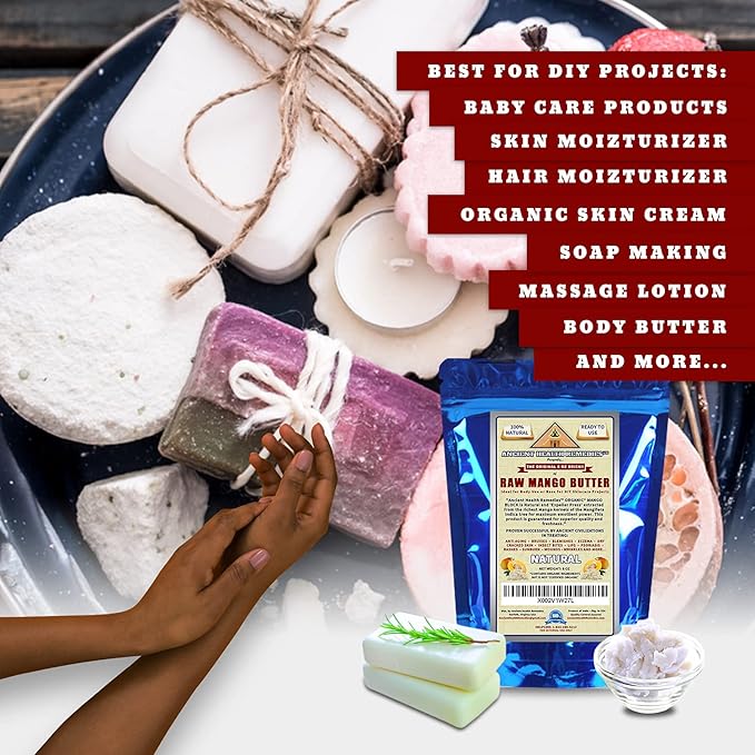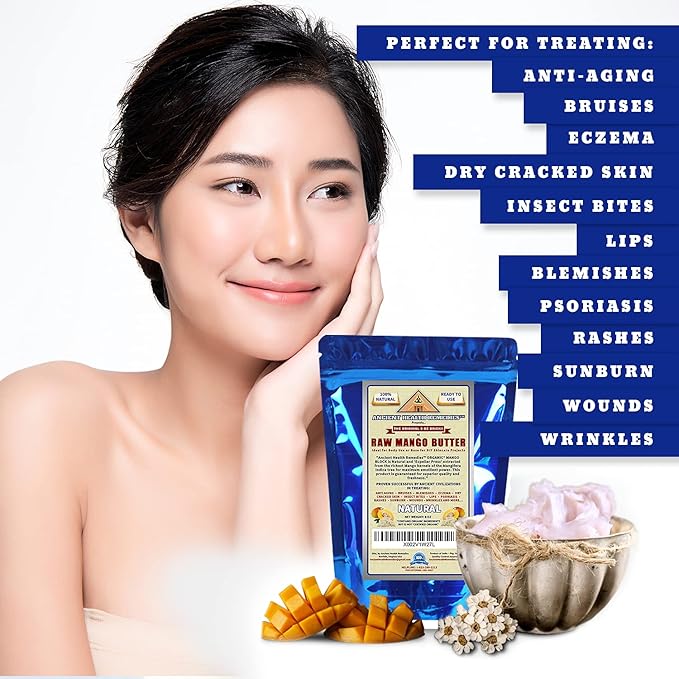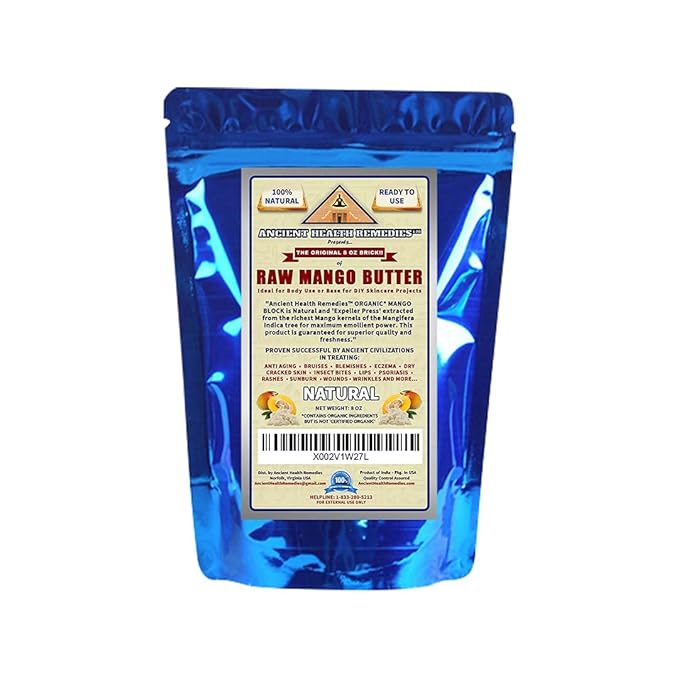 • BUYING AN ANCIENT HEALTH REMEDIES AUTHENTIC RAW MANGO BUTTER JAR/BLOCK is a healthy and affordable 'All Natural' alternative to chemically refined, over the counter Body Butters used in treating Acne, Anti Aging, Dry, Itchy Skin, Chapped Lips, Frostbite, Psoriasis, Rashes, Stretch Marks, Sunburn and more.