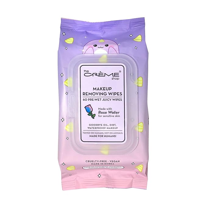 The Crème Shop Makeup Removing Wipes Made with Rose Water for Sensitive Skin (60 Pre-Wet Juicy Wipes)