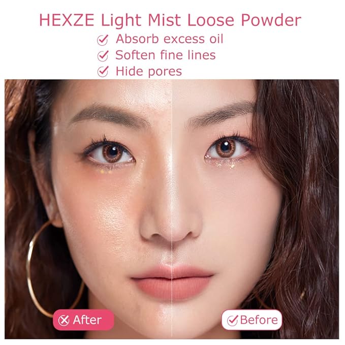 HEXZE Loose Setting Powder, Face Powder Makeup & Finishing Powder for Light, Medium & Tan Skin Tones, Mattifying Finish and Shine Control Transparent white