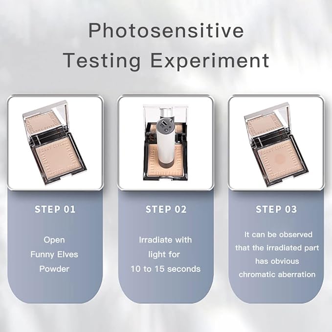 - 【Photosensitive】Sensitive intelligently pressed powder is self-regulating. The photosensitive factor contained in the pressed powder will change the color according to the intensity of ultraviolet light.