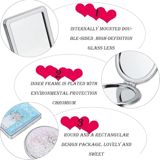 • 【A GREAT SURPRISE GIFT】 High definition lovely quicksand small round mirror, makeup must! Shimmering quicksand sequins add a touch of chic elegance to your mirror. A fun and practical mirror for women of all ages. Ideal for women, makeup lovers, a great surprise gift for Valentine's Day, Christmas, Thanksgiving, birthday, etc.