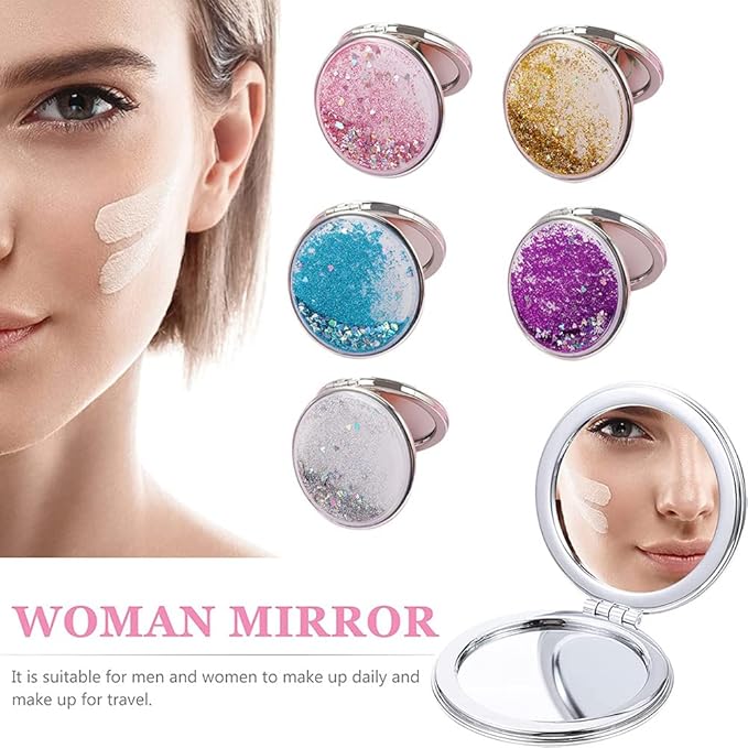 • 【A GREAT SURPRISE GIFT】 High definition lovely quicksand small round mirror, makeup must! Shimmering quicksand sequins add a touch of chic elegance to your mirror. A fun and practical mirror for women of all ages. Ideal for women, makeup lovers, a great surprise gift for Valentine's Day, Christmas, Thanksgiving, birthday, etc.