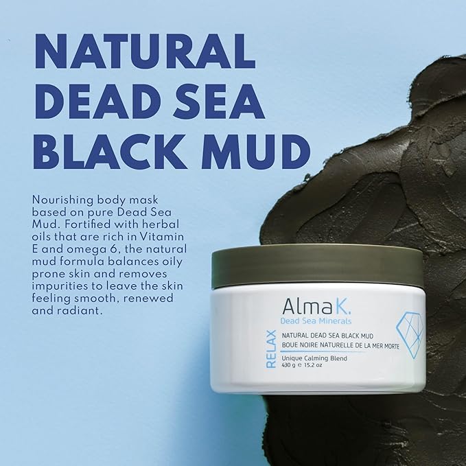 ALMA K Natural Dead Sea Black Mud Mask - Dead Sea Mud Mask for Women - Beauty Mask - Organic Mud Mask for Body - Natural Skin Care Products - 15.2 oz