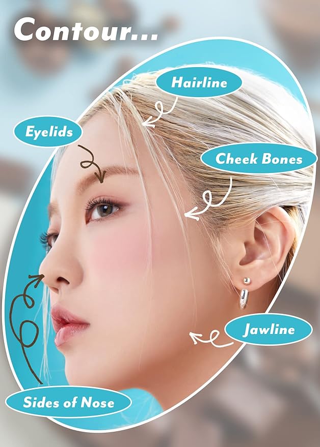 - HOW TO USE: 1. Hairline: Contour from the temples down to the chin for a slimmer-looking face. 2. Jawline: Contour along and under the jawline for a sculted jaw. 3. Cheekbones: Contour from the temples towards the mouth for defined cheekbones. 4. Sides of nose: Contour from the front of the brows down to the bottom of the nose for a slimmer and higher-looking nose. 5. Eyelids: Contour the eyelids in swiping motions for deeper-looking eyes.