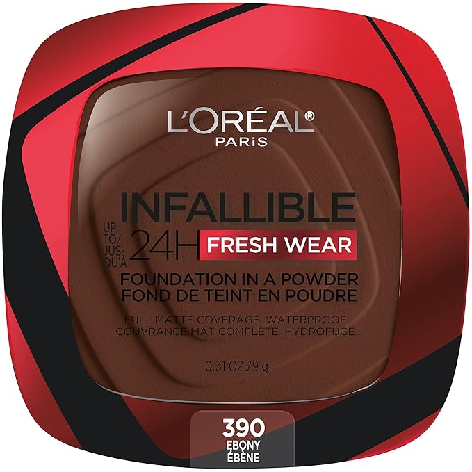 L'Oreal Paris Makeup Infallible Fresh Wear Foundation in a Powder, Up to 24H Wear, Waterproof, Ebony, 0.31 oz.