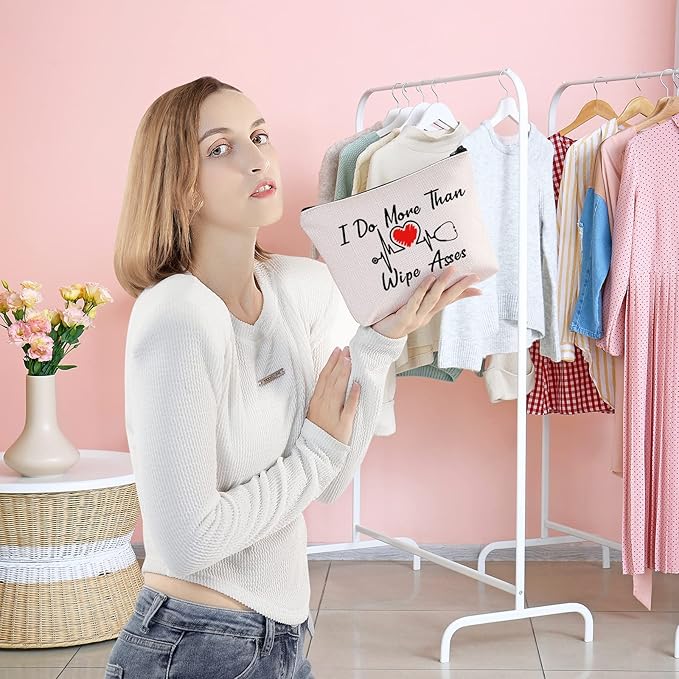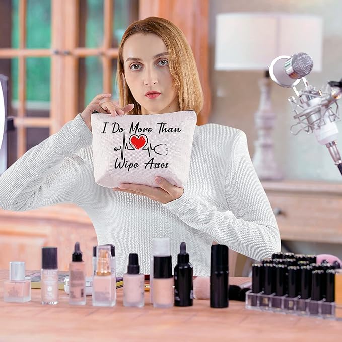 BLUPARK CNA Makeup Bag Certified Nursing Assistant Gifts I Do More Than Wipe Asses Cosmetic Bag for CAN Nurse (Wipe Asses)
