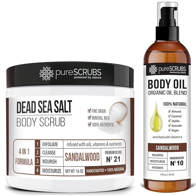 - π€ THE PERFECT COMBINATION - Get pureSCRUBS Dead Sea Salt Sandalwood Body Scrub along with our Sandalwood Body Oil and save 5% in the process.