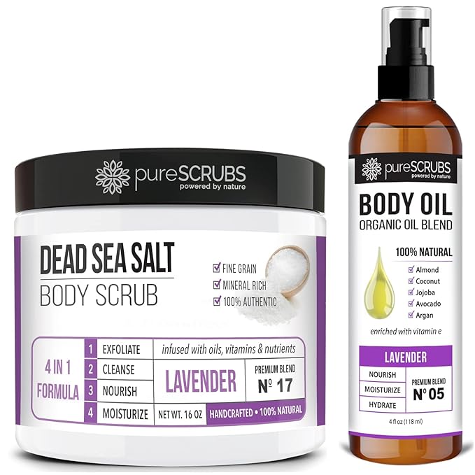 - π THE PERFECT COMBINATION - Get pureSCRUBS Dead Sea Salt Lavender Body Scrub along with our Lavender Body Oil and save 5% in the process.
