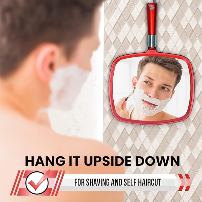 MIRRORVANA Professional Large & Comfy Hand Mirror with Ergonomic Handle for Women - Premium Sparkling Red Model (1-Pack)