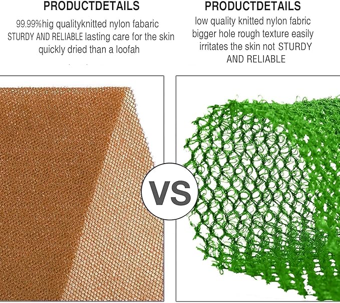 - 【More efficient cleaning】The exfoliating body net is rougher than a ordinary bathing cloth, but soft enough for daily body cleansing.easy for removing dead skin, dirt, oil, and eliminating impurities, unclogging pores, suitable for women and men of most ages to use