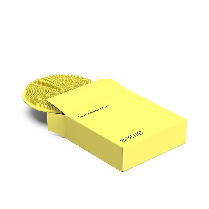 Boie USA Loop Body Scrubber - Soft Silicone-Like Exfoliating Shower Scrubber & Body Cleansing Brush - Hang-to-Wall Loofah Replacement - Exfoliator for All Skin Types - Yellow