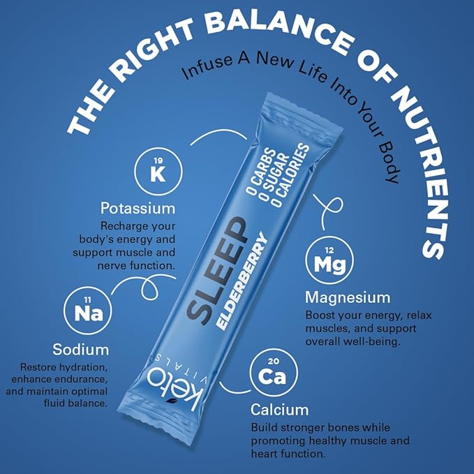 - Wellness and Slumber Support - To help rehydrate and achieve a better night's sleep, get Keto Vitalsβ keto-friendly electrolyte sleep powder packets. Our natural electrolyte powder is packed with antioxidants, vitamins, and amino acids for optimal rest and rehydration.