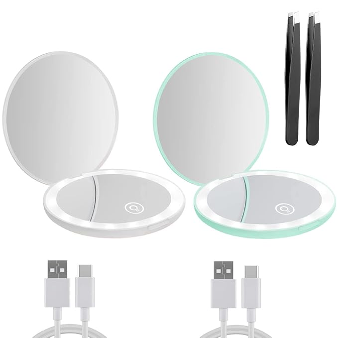 - 【Rechargeable LED Compact Mirror】: Lighted compact mirror with LED light is rechargeable. Soft LED ring light simulates daylight help you to create the flawless makeup. Elegant design for all the occasions such as daily use, party, date or travel.