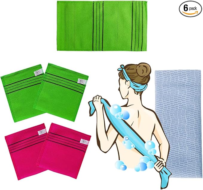 Exfoliating Bath Washcloth Mitt for Remove Dead Skin.Loofah Sponge, Korean & Japanse & African Net Sponge Rag. Back Scrubber Washer for Use in Shower Bath(Variety Pack 6)