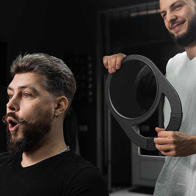 TASALON Unbreakable Hand Mirror, Salon & Barber Mirror with Handle - Anti-Slip Grip for Travel, Makeup, Shaving & Shower - Black