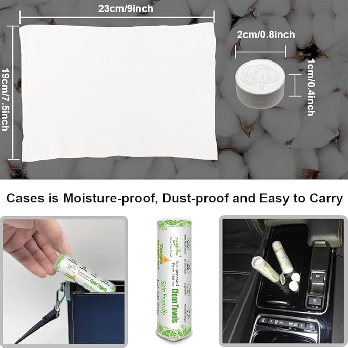 - 🍀【100% COTTON SKIN FRIENDLY】Compressed Towel tablets are made of 100% plant fiber, Biodegradable Facial Towel is easier to clean sensitive and fragile skin, and disposable face cloths have no residue on the skin.disposable towels for face do not contain chemicals and unnecessary additives.