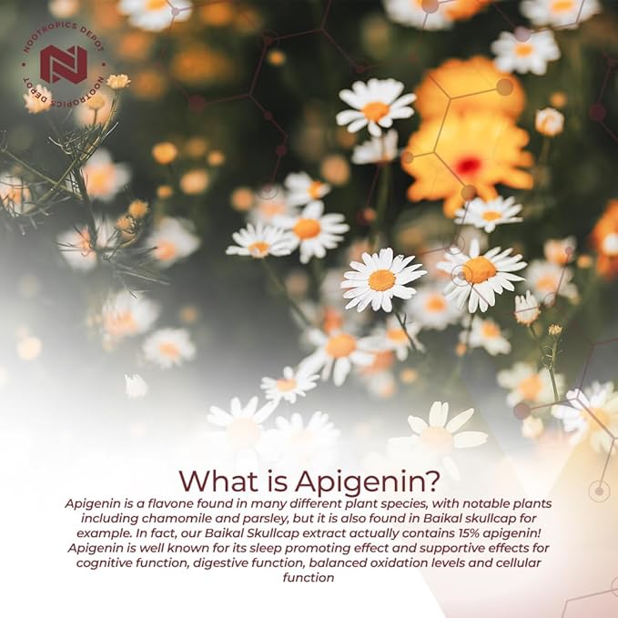 Nootropics Depot Apigenin Capsules | 200mg | 120 Count | >98% Apigenin | Supports Healthy Stress Levels