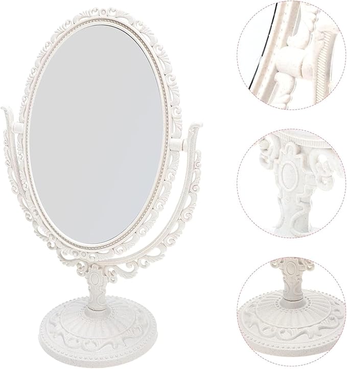 • Size: (approx) Bottom diameter: 12.7 cm/ 5 inch; Height: 29.7 cm/11.69 inch; Mirror width: 13 cm/5.12 inch, can be placed on your desk; When you put them in the right place, it's a great epitome of your beautiful furniture.