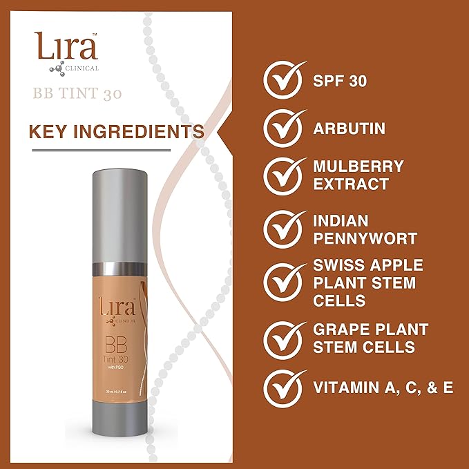 Lira Clinical BB - SPF 30 Tinted BB Cream with PSC & Vitamins - Full coverage - 0.7 fl oz. (BB Tint 30)