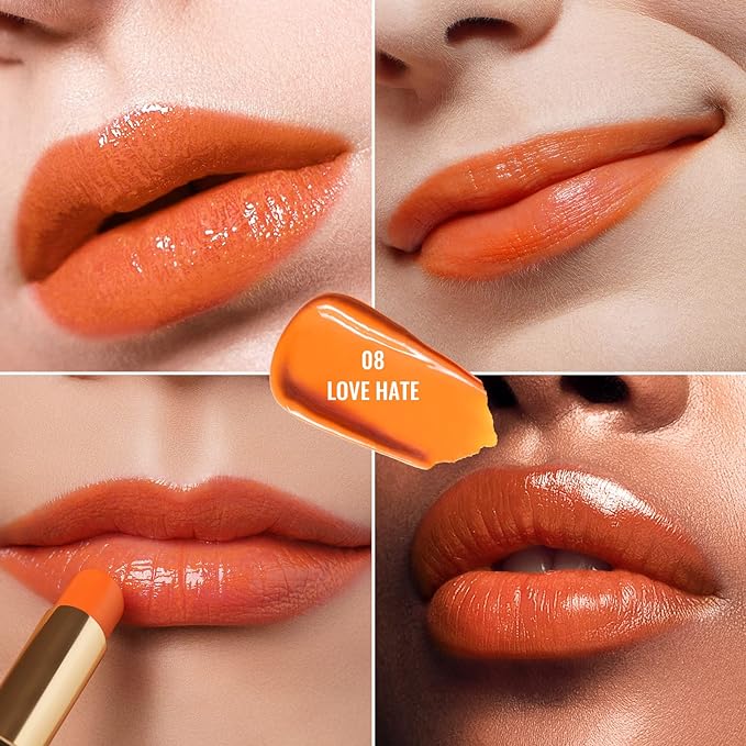 Oulac Orange Lipstick - Moisturizing Lip Stick Glossy Tinted Lip Balm, Sheer Shine Juicy Finish, Lightweight and Hydrating Formula for Dry Lip Care, Vegan 2.2g/0.07oz (08)