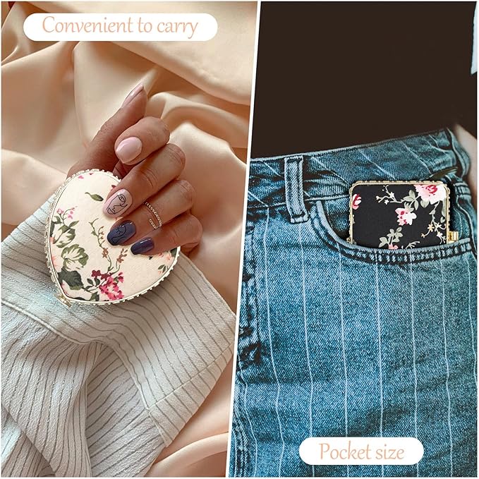 - Versatile: floral mirror can be applied for many purposes, such as checking skin conditions, applying lipsticks and mascara creams, wearing earrings and more, suitable for women