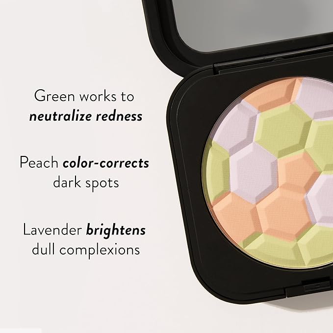 - NEUTRALIZES DISCOLORATION AND REDNESS: This sheer color-correcting makeup setting powder creates a soft-focus effect that blurs imperfections while neutralizing discoloration and redness.