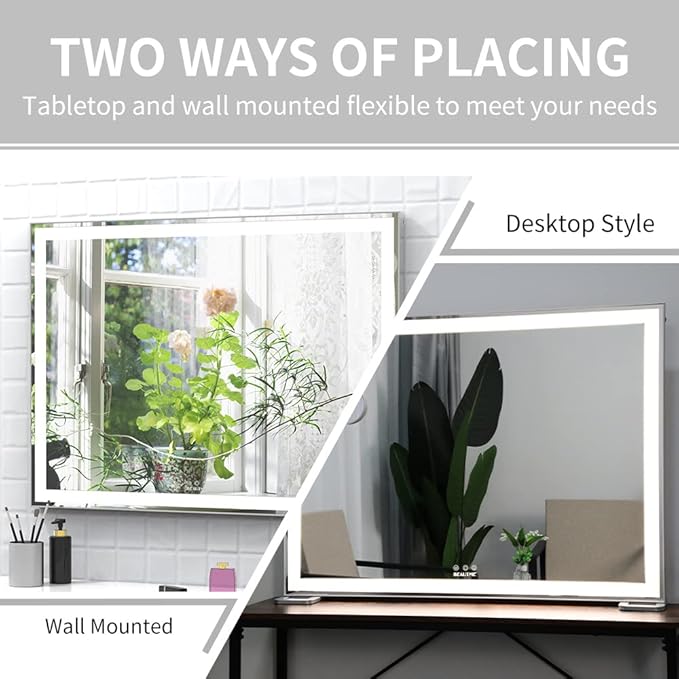 • TABLETOP OR WALL-MOUNTED: The ANYHI LED vanity mirror can be easily installed on a desktop or mounted on the wall. Its unique back panel design supports both vertical and horizontal wall mounting, providing flexibility to adapt to different room layouts.