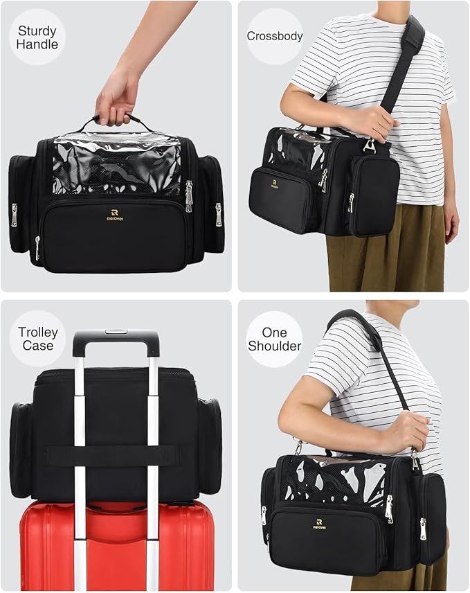 • Sturdy & Durable Makeup Brush Organizer Bag : High quality waterproof Oxford and environmentally friendly transparent TPU used in the large makeup brush holder, make sure the relavel makeup bag stays in shape and use longer