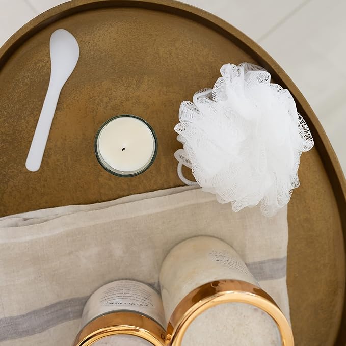 - LUXURY BATHROOM ACCESSORIES | Deluxe spa pillow bundled with bonus bathtub accessories; fragranced wax candle; bath loofa for pampering cleanse; suction tool for easy removal; mesh laundry bag; hook to dry and store