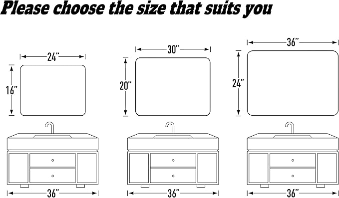 • Aluminum alloy fame and high definition glass: frame is rust-proof, waterproofing, shockproofing, greater stability, and a longer service life. High quality high definition glass, which protects the mirror surface against deformation, thus bringing you a perfect reflection. It is tested and approved above a bathroom sink.
