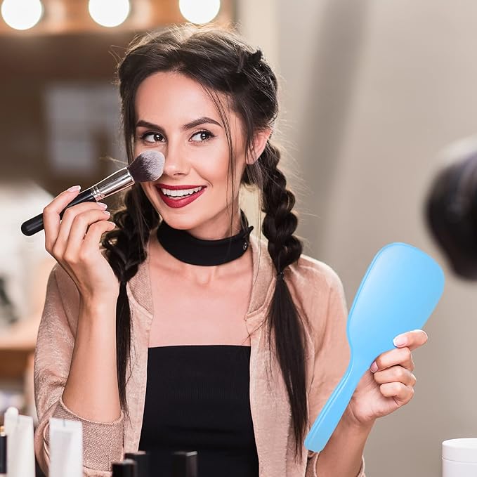 • Carry Easily: the size of the hand makeup mirror is about 3.14 inch wide, 7.09 inch long, which is easy for you to take and use, you can take it when you go out or go for a business trip, it will not take too much space in your handbag