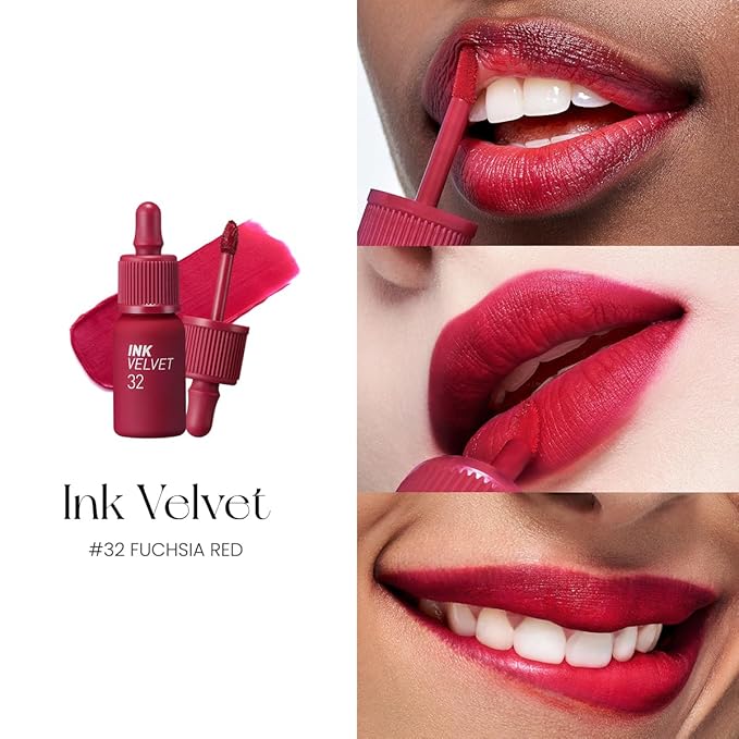Peripera Ink the Velvet Lip Tint - High Pigment Color, Longwear, Weightless, Not Animal Tested, Gluten-Free, Paraben-Free (032 FUCHSIA RED)