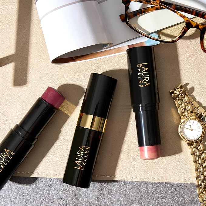 LAURA GELLER NEW YORK Italian Marble Blush Makeup Stick | Cream Finish Marbleized Blush for Cheeks, D'oro Berry