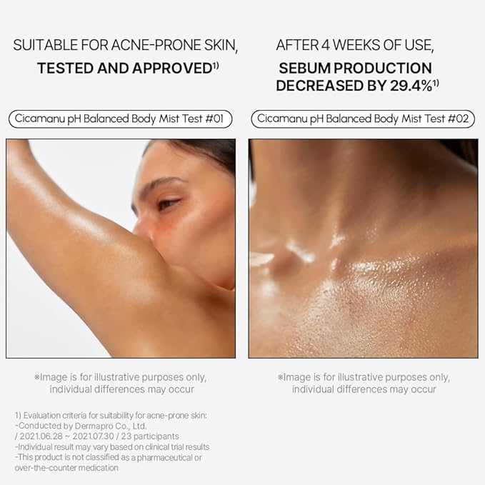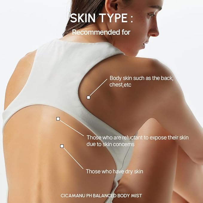 - CALM & TACKLE ACNE: Infused with Centella Asiatica and Manuka Honey, this body mist combats body acne while providing deep hydration without stickiness or dryness.