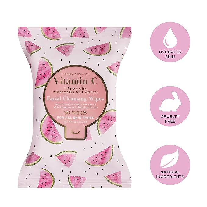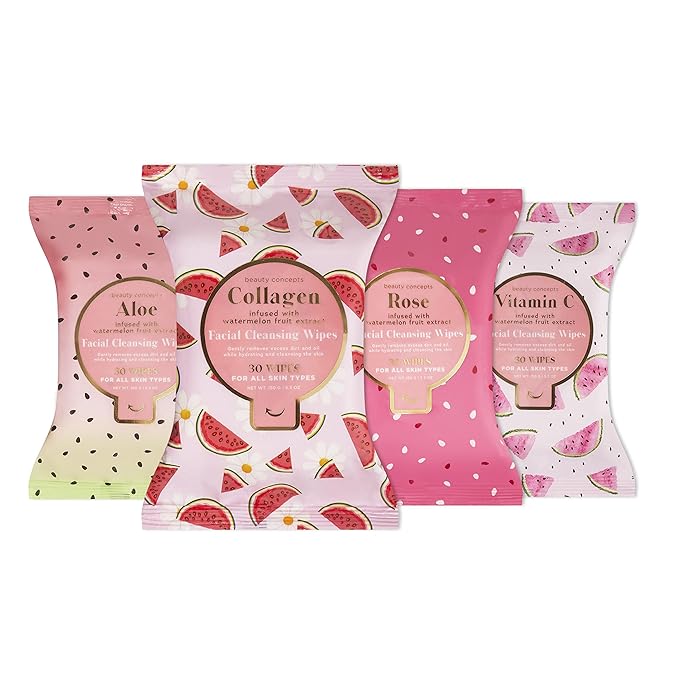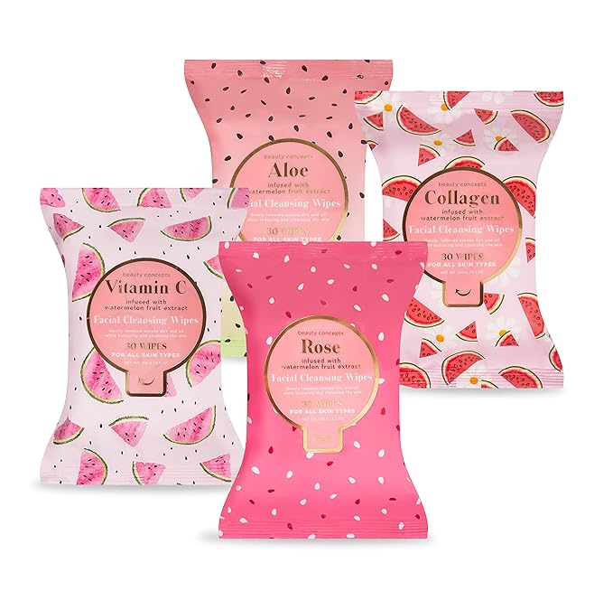 Beauty Concepts Facial Wipe Set - Packs of Face Wipes, Makeup Removing Wipes, Aloe, Vitamin C, Collagen, and Rose