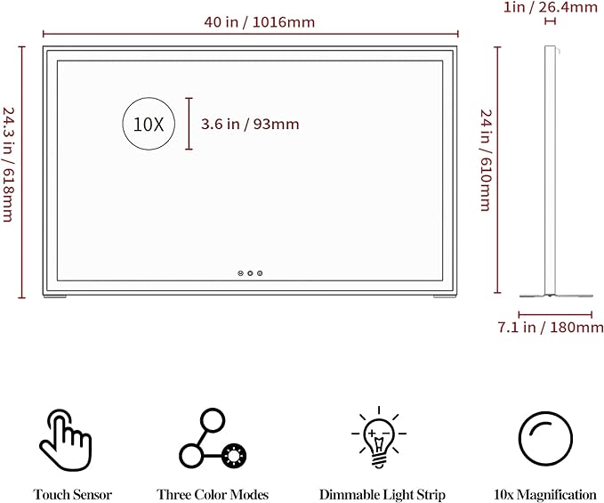 • EXTRA LARGE SIZE & 10X MAGNIFYING MIRROR: This extra large vanity mirror has a perfect large size (40.2"x 24.4"), providing you a perfect upper body view. Besides, the attached 10x magnifier can help you check the details, make-up, skin cleaning.
