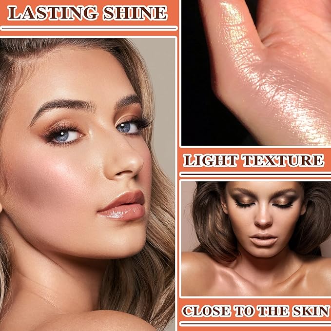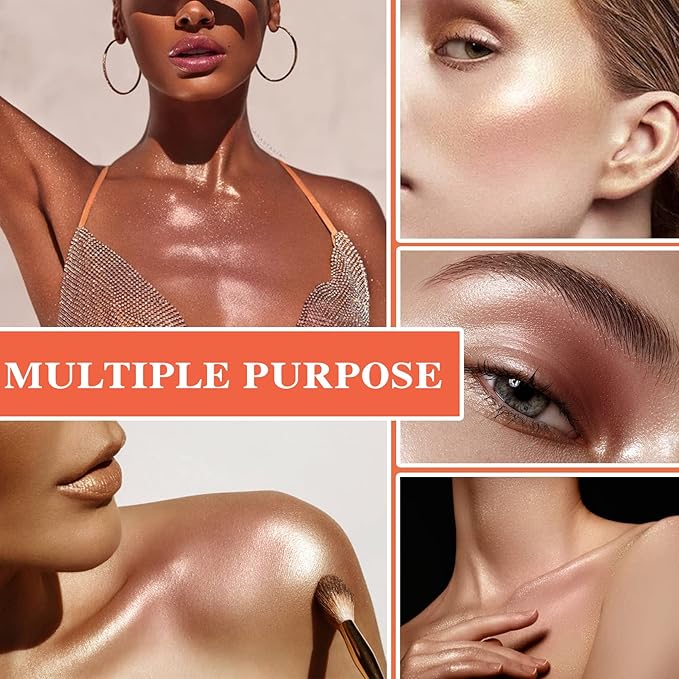 - 🌈【Easy to Use】Lightweight texture, naturally delicate and smooth, with excellent absorbency, highlighter powder can easily adhere to your body, unique sponge head design, so that the powder can be more evenly applied, easy to glide, easy to color, excellent gorgeous shine, non-sticky hands, easy to remove.