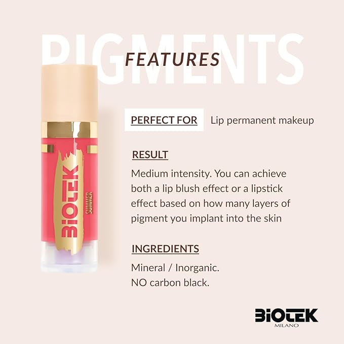 - Intermediate shade between pinks and reds. Biotek's Summer lip pigment is suitable for both permanent makeup and microblading.