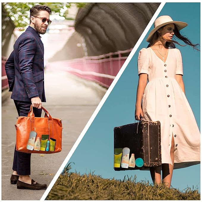 • Mini Travel Essentials: This silicone bottle covers for travel help to prevent the liquid leaking in your makeup bag or cloth. It fits for most bottle in luggage, such as travel size toiletries, shampoo bottles, conditioner, hairspray, lotion etc. ( NOTE: DON’T USE ON PUMP TOPS) Being a cruise ship essentials or beach essentials for women and man