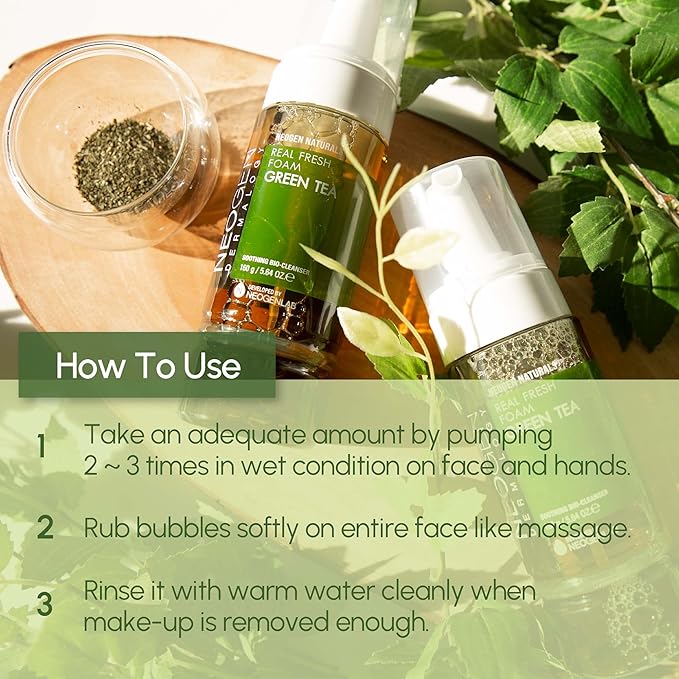 DERMALOGY by NEOGENLAB Real Fresh Foam Cleanser, Green Tea, 5.6 Fl Oz (Pack of 2)