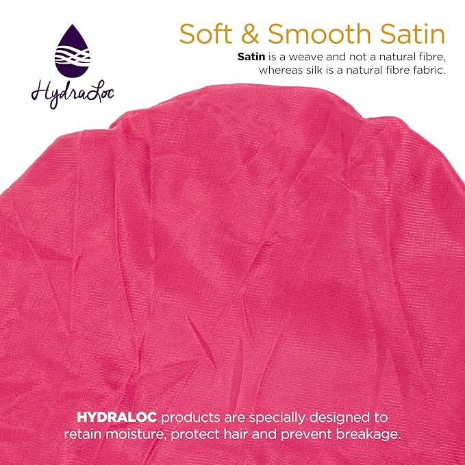 - SOFT SATIN - Satin material reduces frizz, friction and prevents breakage. Soft, lightweight satin retains moisture and shine on scalp and hair. Satin is made from polyester allowing cap to not lose shape and easily absorb moisture. Argan and black castor oil are added to add shine and health to hair.