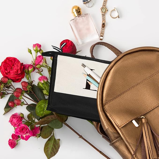 Monogrammed for Women Initial bridesmaid gifts, Personalized monogram Monogram Cosmetic Bag,Travel Makeup Bag Suitable for Wedding weekend Beach Gift for Women Teachers Friends.Pure letters L