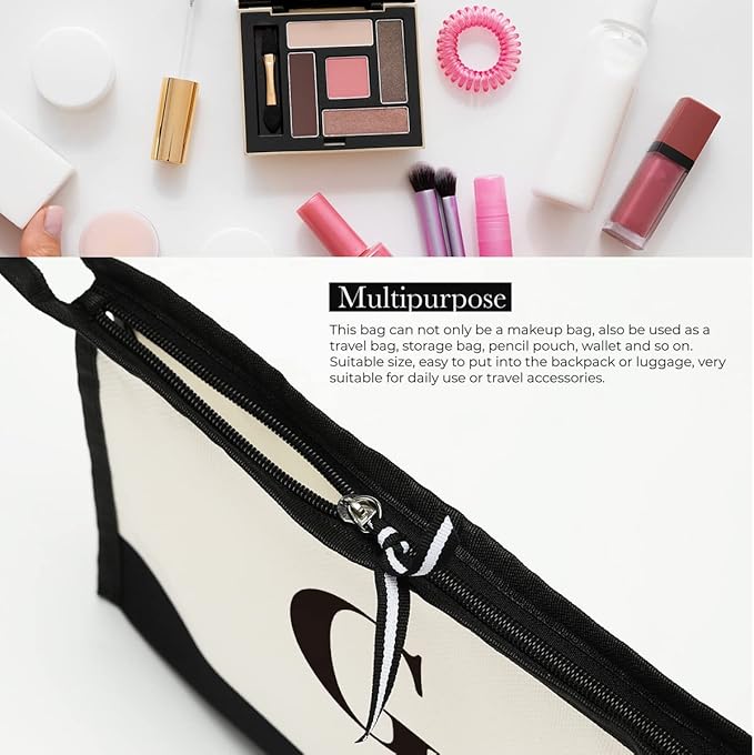 Monogrammed for Women Initial bridesmaid gifts, Personalized monogram Monogram Cosmetic Bag,Travel Makeup Bag Suitable for Wedding weekend Beach Gift for Women Teachers Friends.Pure letters G