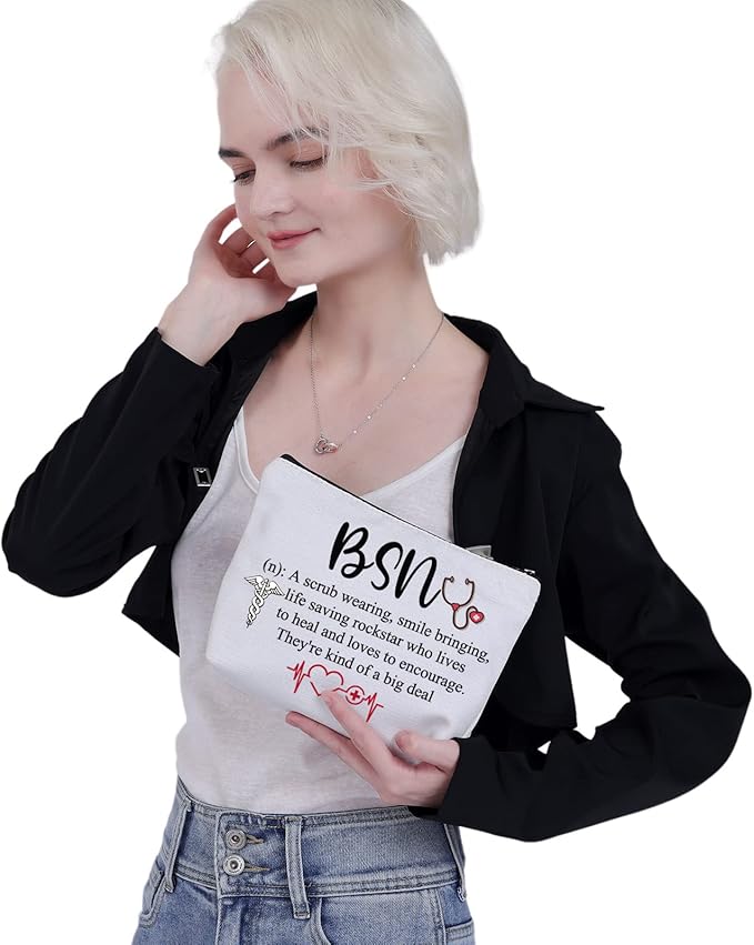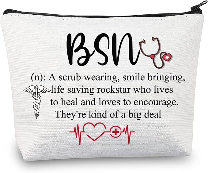 - BSN coworker gifts nurse graduation giftstravel bag toiletry case zippered luggage pouch multipurpose bag canvas bags cosmetic bag for purse this functional portable bag suitable for daily use and travel.