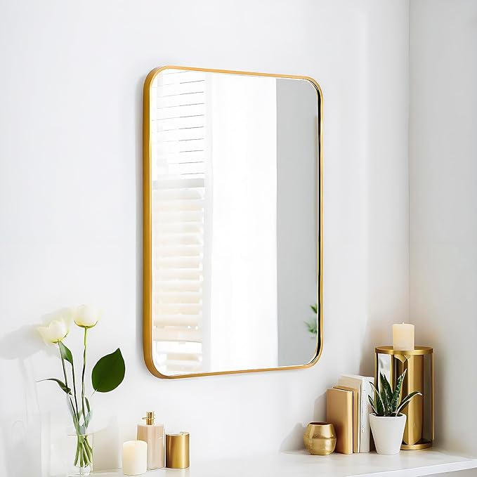 16x24 Rectangle Mirror Full Length Wall Mounted Hanging or Against Wall Metal Frame Dressing Make-up Mirrors for Entryway Bedroom Bathroom Living Room 16 24 inch Gold